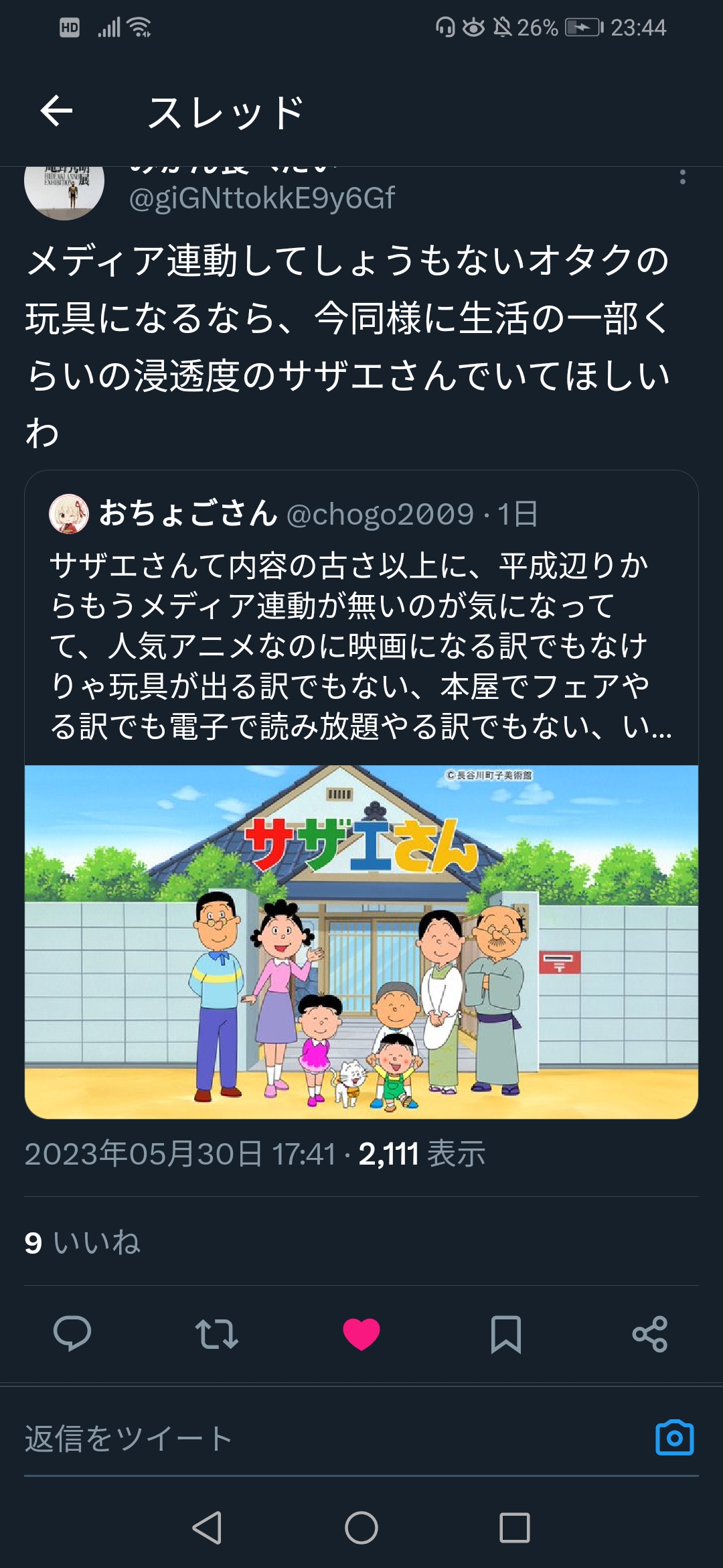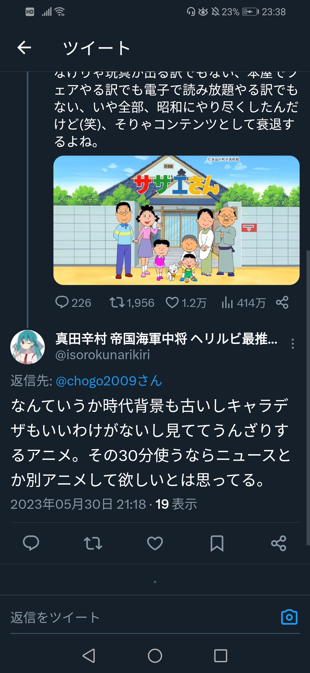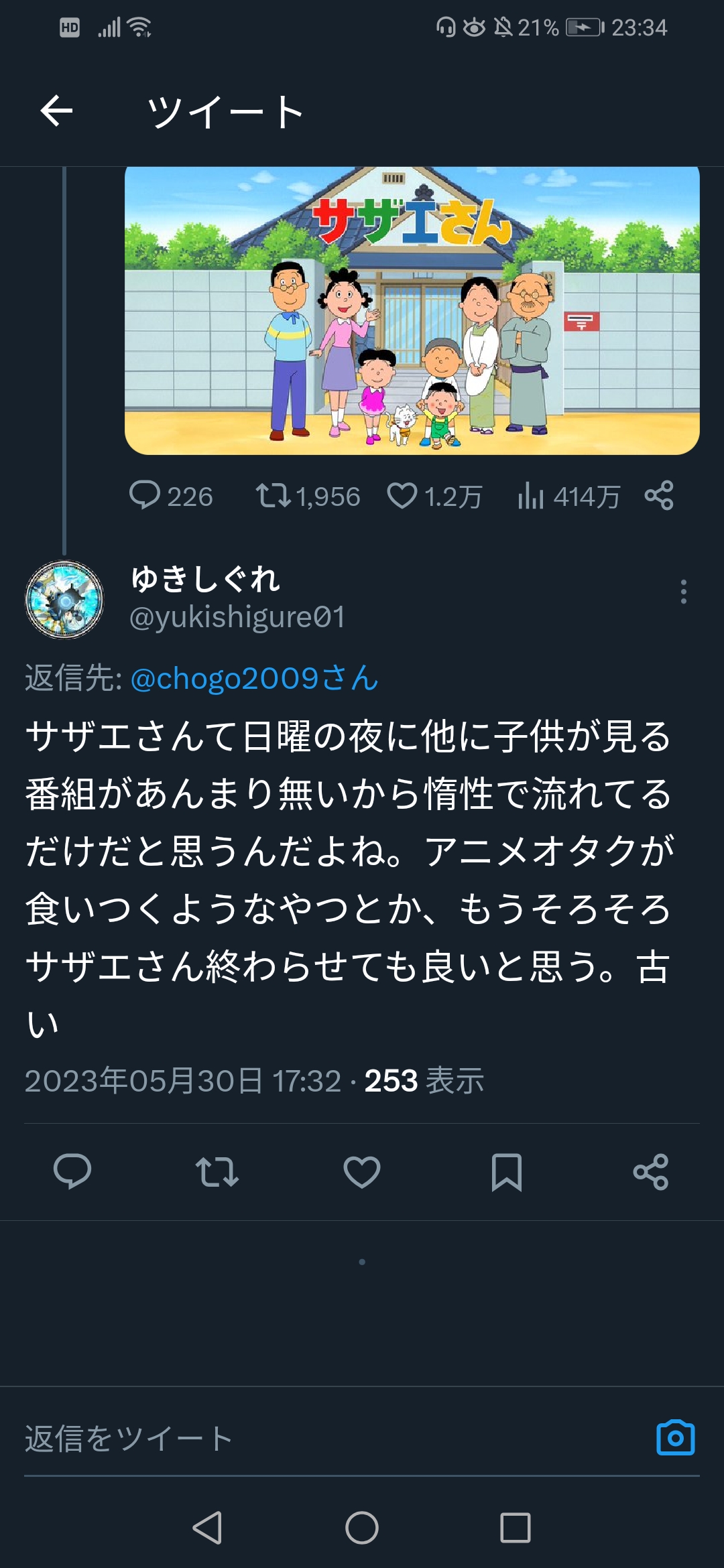Twitter民「サザエはオワコン、それに比べて深夜アニメは…」