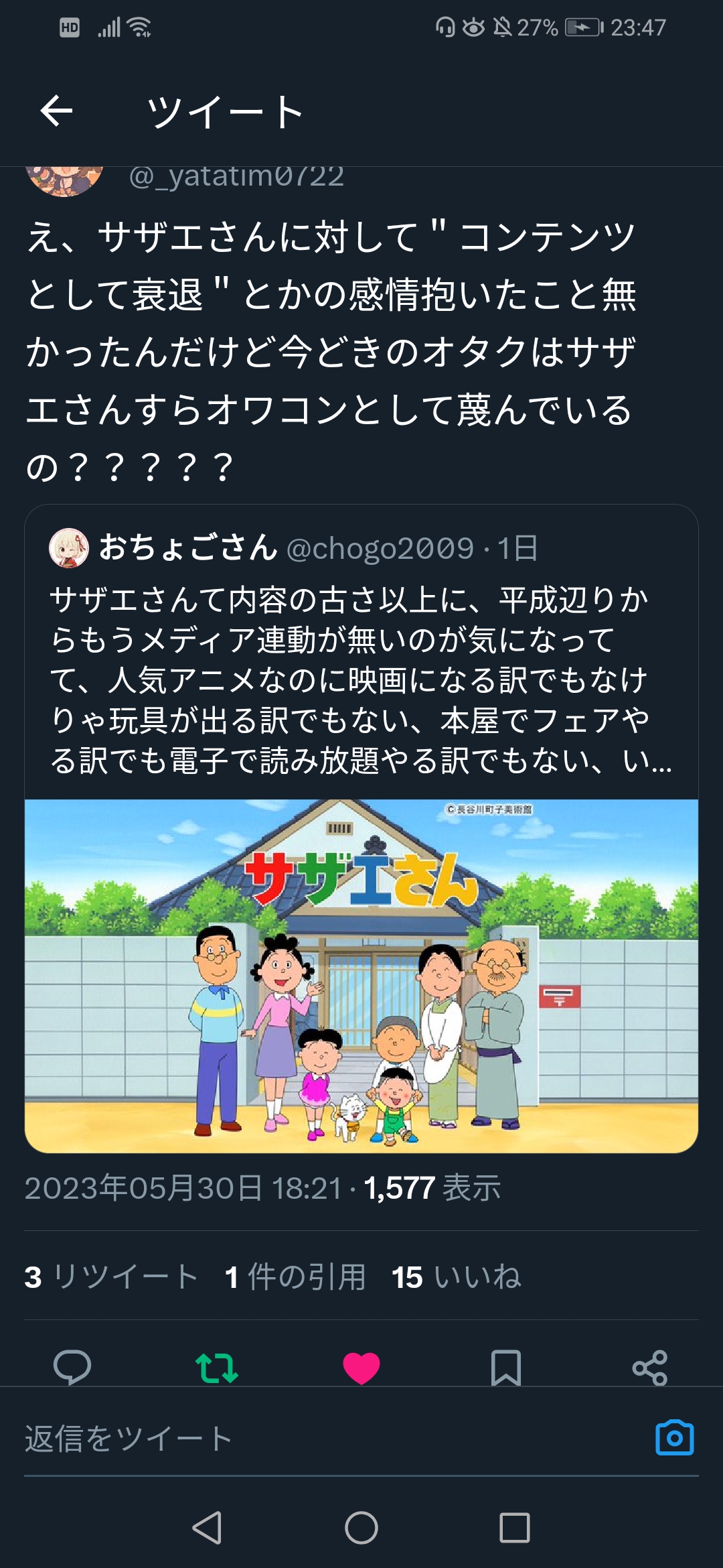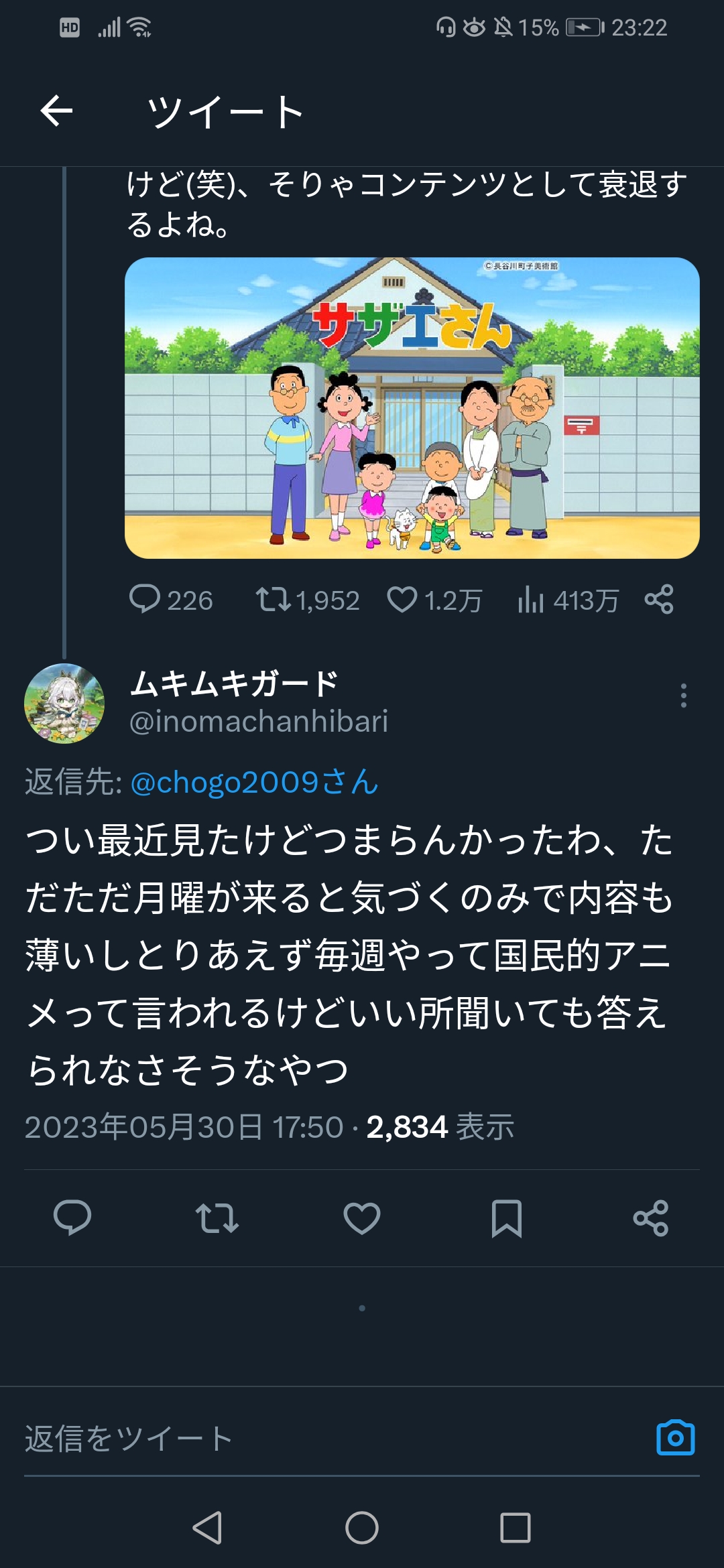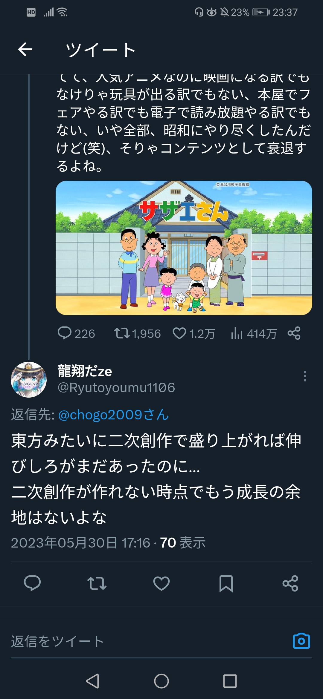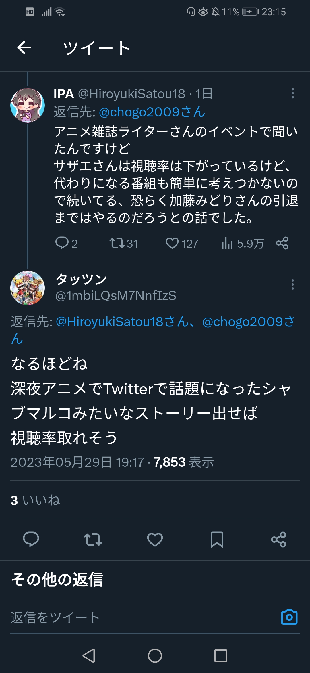 Twitter民「サザエはオワコン、それに比べて深夜アニメは…」