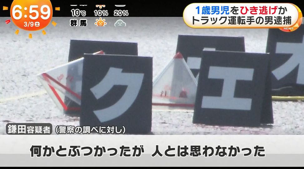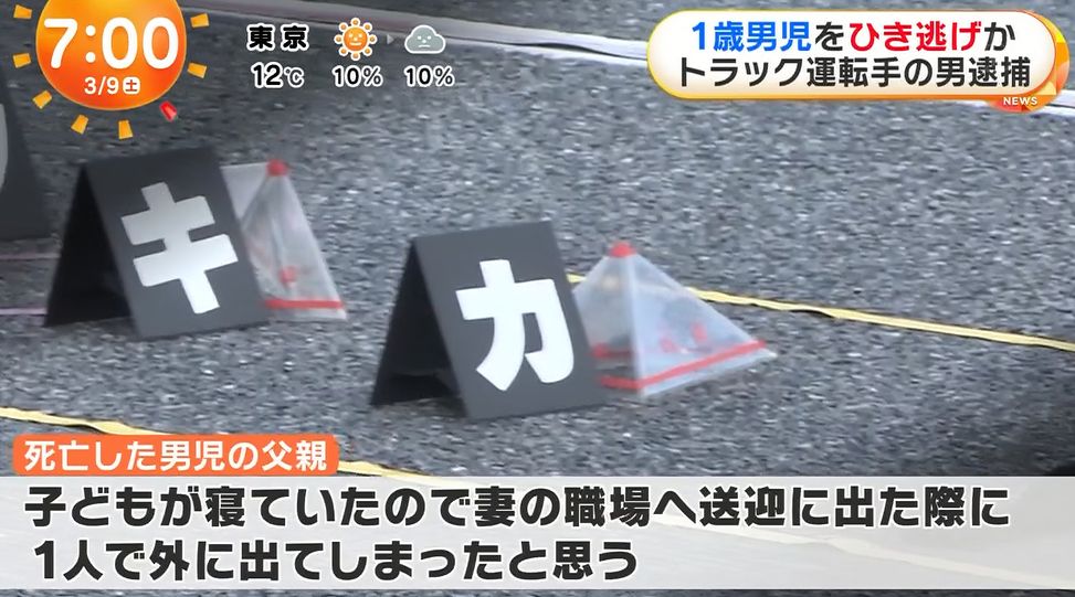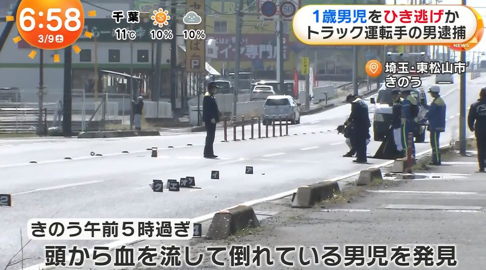 午前5時頃に国道にいた1歳児、轢かれて死亡。ひき逃げした運転手は逮捕&実名報道