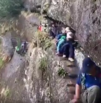 【動画】やばすぎる道を歩いていた登山家さん、崖下に転がり落ちる
